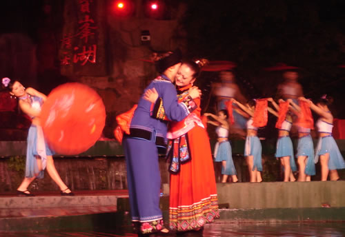 姑娘出嫁,為女人一生中最大的喜事,本應(yīng)充滿(mǎn)幸福、歡樂(lè)的氣氛。然而,舊時(shí)湘西、湘南、鄂西、川西(成都等地)、黔東(銅仁、凱里一帶)諸地,卻流行著一種與之完全相反情調(diào)的古老婚俗——“哭嫁”。也就是在姑娘“出閣”之前,不但新娘本人哭得很傷心,像淚人一般;而且,新娘的母親、姐妹以及姑媽、姨媽、舅媽及其他交往較多的女友,都要陪著新娘哭。湘西土家族哭嫁的風(fēng)俗尤為普遍、濃厚,不但哭嫁的時(shí)間較長(zhǎng)(少則十來(lái)天,多達(dá)個(gè)把月),而且哭嫁歌也保存得古樸、完整。 姑娘出嫁為什么要哭?哪有那么多的東西可哭?這是一種蘊(yùn)含甚為豐厚的人生禮俗,也是一種饒有興趣的婚俗事象。 俗話(huà)悅:“人不傷心不落淚!惫媚锍黾拗砸蓿且?yàn)樵谂f式婚姻制度下,女孩(尤其是勞苦大眾家庭的女孩)總是作為犧牲品“拋”(賣(mài))給夫家的,她們的身心受到極大傷害。因此,湘西等地的女孩在出嫁之前要哭泣,要呼號(hào),哭嫁歌就是感情發(fā)泄的最好表現(xiàn)方式。 哭嫁的源起 哭嫁的風(fēng)俗,不知道起源于什么時(shí)候。戰(zhàn)國(guó)時(shí)期,趙國(guó)的公主嫁到燕國(guó)去作王后,她的母親趙太后在臨別時(shí)"持其踵,為之泣,祝曰,必勿使返。"大約就是后來(lái)長(zhǎng)盛不衰的哭嫁風(fēng)俗的濫觴了。 這種風(fēng)俗,直至清末還盛行于四川農(nóng)村中,隨地區(qū)變化而大同小異。解放前,聽(tīng)老人們說(shuō),早些時(shí)候,沒(méi)有嫁而不哭的人家。如果出現(xiàn)嫁而不哭的姑娘,也會(huì)被鄰里看作沒(méi)有教養(yǎng)的人,傳為笑柄;相傳有出嫁姑娘不哭而遭母親責(zé)打的事,這位母親當(dāng)然算得上是入流導(dǎo)演了。 舊時(shí)宣講故事中,有花轎臨門(mén),父親強(qiáng)令哭《迎風(fēng)罵媒歌》的情節(jié),可知哭嫁是有歌詞的,帶有表演性質(zhì),原是用來(lái)渲染氣氛,以悲襯喜;不過(guò),因?yàn)榛橐鍪前k的,真哭真罵的也不會(huì)少。 抗日戰(zhàn)爭(zhēng)后期,風(fēng)氣較開(kāi),哭嫁之風(fēng)已不盛行,而老人們卻還在津津樂(lè)道,哭的方式是,從婚期前一個(gè)月的首日起,入黃昏,姑娘訴哭約一個(gè)小時(shí),其聲嗚嗚。十天以后,她的母親加入"陪哭";又十天以后,她的祖母加入陪哭。這家沒(méi)有諸姑姊妹,人們說(shuō),如果有的話(huà),也應(yīng)當(dāng)加入陪哭行列的。 哭嫁在川西叫"坐堂"。清代吉道人《味蔗軒隨筆·坐堂詞》云:"婚姻之禮,各省風(fēng)俗不同。然酌禮準(zhǔn)情,各省亦大同小異。凡男家娶婦先賦之詩(shī),謂之'催妝';女家親串頌女之詞,謂之'坐堂'。坐堂者,女當(dāng)喜期將近之先數(shù)夕,其諸姑伯姊,置酒為女祖餞,各述吉祥之詞,以為頌美,女則申己之意以答。女左右更有少女,則隨而嫻習(xí)者也。其詞要多鄙俚,然有音韻凄清,風(fēng)格遒勁,如古歌古謠者。羅江明府蔡,微服巡查鄉(xiāng)里,一日行至某處,值有女子歸,諸娣姒咸以諛詞頌女,女申意以答。忽風(fēng)吹句入耳,詞曰:'鳳凰落在桌子上,哪個(gè)女兒肯離娘'。一字一轉(zhuǎn),音韻凄其,誰(shuí)謂天籟之鳴,不在愚夫愚婦耶!"云云。吉道人姓周名際唐,成都人。吉道人記得明明白白,可惜他只記了一句哭嫁詞,難窺全貌。好在舊時(shí)坊間叢刻中有《訓(xùn)女哭嫁》一種,可見(jiàn)一斑。這本小書(shū)的目錄有《閨聲哭》、《娘訓(xùn)女》、《嫂哭妹》、《哭爹媽》、《哭哥嫂》、《花轎到屋哭》、《哭叔爺》、《哭兄弟》、《哭外公外婆》、《哭舅爺》、《拜香火哭》等等,編次有點(diǎn)凌亂,似乎隨手所記,未經(jīng)文人之手。遙想《詩(shī)》十五國(guó)風(fēng)未刪之時(shí),大約也不過(guò)如此吧! 閨聲哭 娘聽(tīng)后園鳥(niǎo)雀驚,要聽(tīng)房中女兒聲。 我娘當(dāng)門(mén)苦葛藤,手攀苦葛訴苦情。 我娘苦情苦過(guò)了,女兒苦情才起根。 ............ 桔子開(kāi)花葉子青,陽(yáng)雀開(kāi)聲我開(kāi)聲。 新打銅盆才裝水,新打剪刀兩面青。 娘不開(kāi)口我開(kāi)口,娘不開(kāi)聲我開(kāi)聲。 當(dāng)門(mén)一根木蓮樹(shù),目連樹(shù)上掛卷經(jīng)。 一本經(jīng)書(shū)背完了,未見(jiàn)我娘來(lái)開(kāi)聲。 虧了我娘睡得穩(wěn),爹媽眼淚貴如金。 哭爹媽 月亮彎彎照華堂,女兒開(kāi)言叫爹娘。 父母養(yǎng)兒空指望,如似南柯夢(mèng)一場(chǎng)。 一尺五寸把兒養(yǎng),移干就濕苦非常。 ............ 勞心費(fèi)力成虛恍,枉自爹娘苦一場(chǎng)。 哭兄弟 黑漆茶盤(pán)烏木頭,姐姐離娘弟不留。 留到姐姐吃你飯,留到姐姐穿你衣。 兄弟當(dāng)家掙家忙,嫁了姐姐買(mǎi)地方。 上頭買(mǎi)齊潼川府,下頭買(mǎi)齊遂寧鄉(xiāng)。 ............ 這個(gè)本子所記是川北的歌詞,以前所見(jiàn)的是川南,吉道人所記的是川西,川東,大約也不會(huì)大異的。遺憾的是,該書(shū)所記哭嫁詞雖有"只怨媒人莫良心"等語(yǔ),卻沒(méi)有列出"罵媒專(zhuān)目,大約是怕媒人太難堪了吧! 其實(shí),罵媒是哭嫁中必不可少的節(jié)目,也是最具反抗色彩的哭嫁歌詞。舊社會(huì),婦女無(wú)婚姻自由可言,由于"三從四德"的束縛,平時(shí)對(duì)于自己的終身大事幾乎不能置一詞,全由媒人和父母擺布;因此,這登花轎之前的"罵媒",便是難得的發(fā)泄機(jī)會(huì)。這早已反映在戲曲和民間說(shuō)唱等