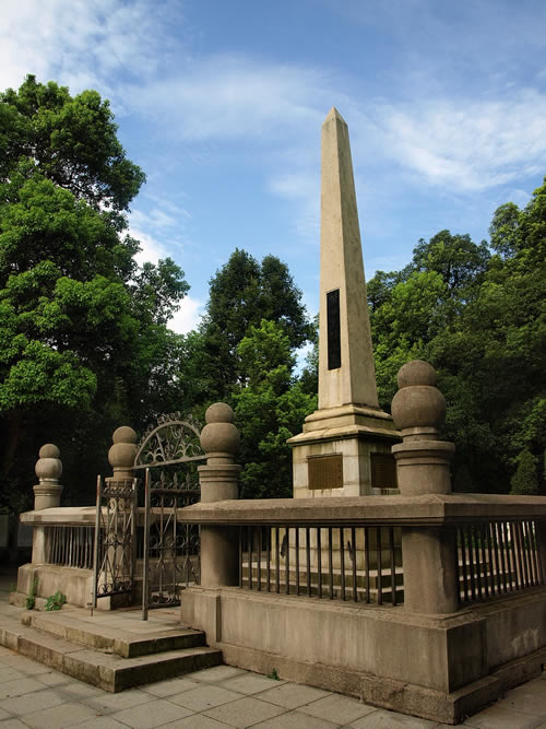 在岳麓山上。墓由三層臺階百余級踏步導(dǎo)入,墓碑為一四棱形的整塊4乳白色巖石琢成,全高約10米,因地處岳麓山高峰開闊處,顯得格外聳拔、挺秀、眺望湘江江,長沙景物盡入眼底。黃光(1874—1916),朱名軫,號杞園,又號克強,湖南善化(今長沙)人,辛亥革命重要領(lǐng)導(dǎo)人,史有“孫黃”之稱。1904年組織華興會,翌年8月與孫中山、章太炎等人組織中國同盟會,曾生動并領(lǐng)導(dǎo)欽州、廉州(治今廣西合浦)、鎮(zhèn)獻(xiàn)花(今友誼關(guān))、河口、廣州等地區(qū)反清戰(zhàn)役起義,任民軍戰(zhàn)時總司令。南京臨時政府成立,任陸軍總長。袁世凱稱帝后,任討袁軍總司令。1914年赴美醫(yī)病,1916年病重回國,10月31日于上海病故,時年43歲,次年移柩長沙,國葬于岳麓山。為全國重點文物保護(hù)單位。