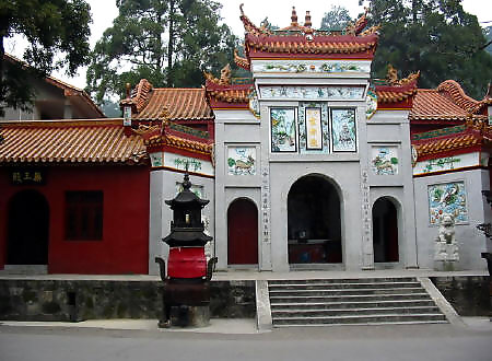 在岳麓山半腰,系晉初古寺,是佛教人湘最早的一所大寺。明神宗時(shí) 更名為萬壽寺,民國初年復(fù)名,古麓山專。唐代大詩人杜甫曾用“寺門高開 洞庭野,殿腳插入赤沙湖”的詩句稱頌殿字宏大。大雄寶殿等主要建筑,于 1944年被炸毀,僅存山門和觀音閣,現(xiàn)已修整一新.山門上有“古麓出寺” 的橫額,兩旁為“漢魏最初名勝,湖湘第一道場(chǎng)"對(duì)聯(lián),門外古楓參天,濃 蔭覆蓋,門內(nèi)園圃百花爭艷。觀音閣為磚木結(jié)構(gòu),1955年曾加以修葺,1980 年再次修整恢復(fù)原貌,并在廳堂神龕中置觀音像。閻內(nèi)常舉辦小型書畫展 覽。觀音閣前有兩株羅漢松,左邊一株是六朝遺跡,稱“六朝松",樹 齡在1700年以上, 是岳麓山植物界的"元老", 老干新枝,紛繁翁 郁,彌足珍貴;右邊一株于清代被巨風(fēng)拔去并被清代人補(bǔ)植。兩棵古松 并峙于閣前,游人樹下經(jīng)過,若入關(guān)隘,故有“關(guān)松"之稱。