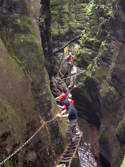 坐龍峽圖片 坐龍峽風(fēng)景區(qū)位于古丈縣河西鎮(zhèn),與“芙蓉鎮(zhèn)”--王村一水之隔。經(jīng)由300萬年大自然的風(fēng)吹、水蝕而成,一直隱逸于湘西茫茫十萬群山之中。它長約3500米,最大高差達(dá)300余米;寬處不足丈余,窄處僅容一人通過;谷內(nèi)絕壁縱疊,溪瀑橫懸,崖樹斜逸,異草遍坡。