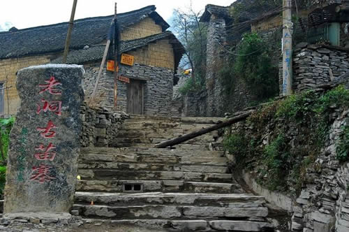 這里是一座石頭城,呈九宮八卦布局,設(shè)計(jì)精巧,而且攻防體系和排水體系都相當(dāng)完整,這里曾有著富足而輝煌的歷史。直到民國(guó)25年,烏龍山土匪1000多人攻打老洞苗寨12天12夜,燒掉老洞古建筑群2座,搶走銀光洋一萬(wàn)余塊,銅元一萬(wàn)多斤,銀錠300多斤,從此以后老洞苗寨沒落深山,步入貧窮而漸漸地不為人知。