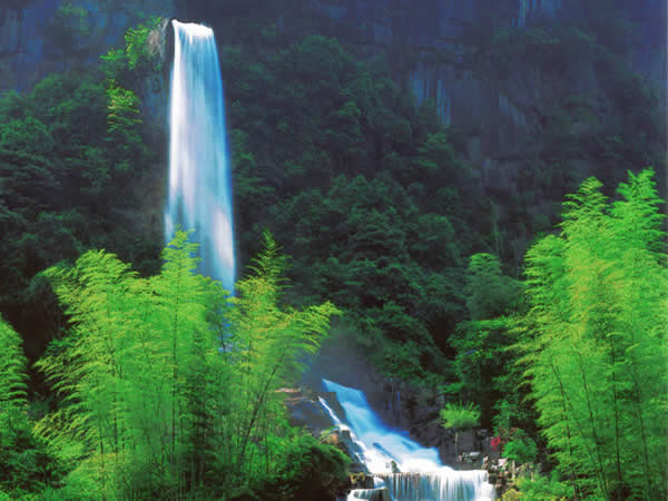 寶峰湖瀑布 寶峰湖水深72米,長(zhǎng)2.5公里,以其秀麗的湖光水色與幽野的洞天情趣成為武陵源水景風(fēng)光的代表之作,電視劇《西游記》中花果山水簾洞外景就拍攝于“奇峰飛瀑”。