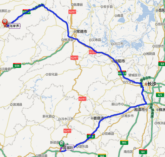 邵陽市到張家界自駕車路線圖