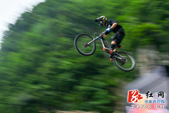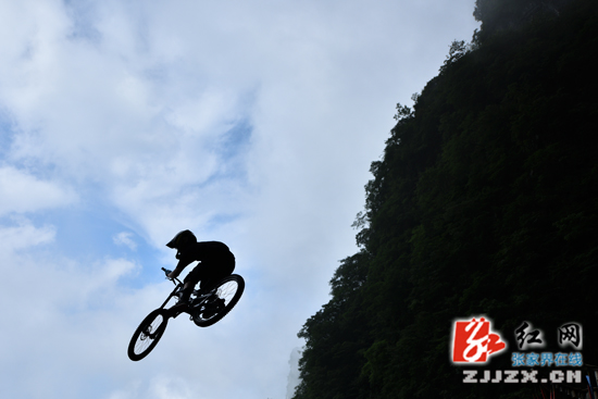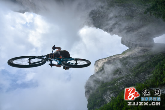 張家界天門山天梯速降賽即將拉開帷幕,7月14日,來自不同國家的14名選手齊聚天門山999級臺階進行適應場地訓練。選手們在空中做出各種翻滾特技動作,引來游人尖叫不斷。