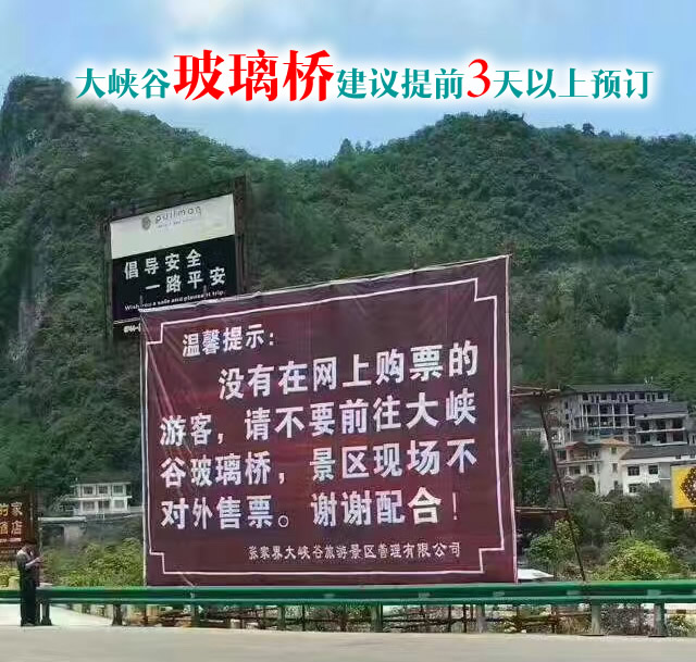 4、沒有在網(wǎng)上購票的游客,請不要前往大峽谷玻璃橋,景區(qū)現(xiàn)場不對外售票。